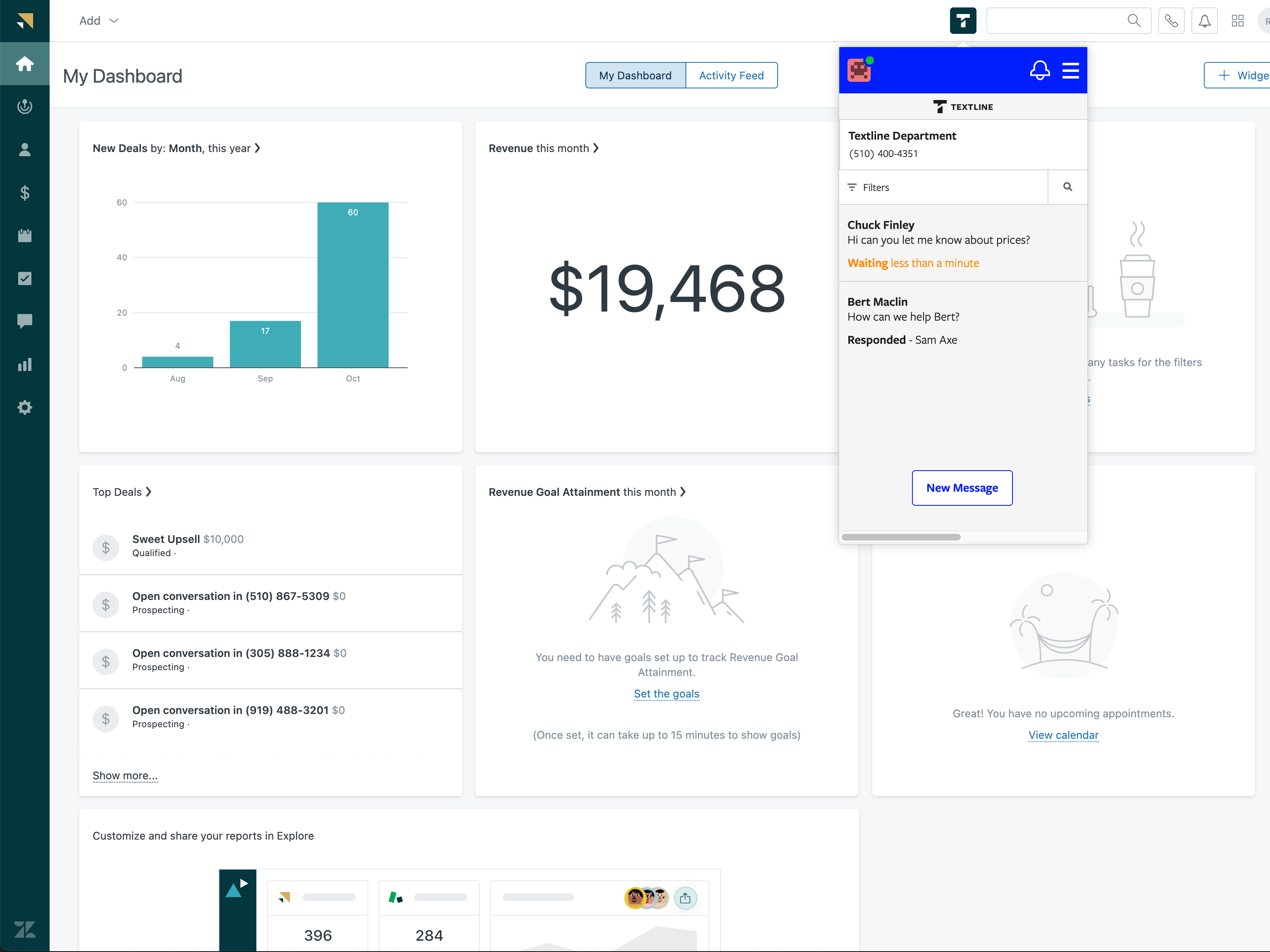 We are excited to announce that our new Zendesk Sell integration is live. Like the popular Zendesk Support integration, Textline with Zendesk Sell lets you use Textline’s business texting software natively within Zendesk Sell from the top bar or sidebar widget.